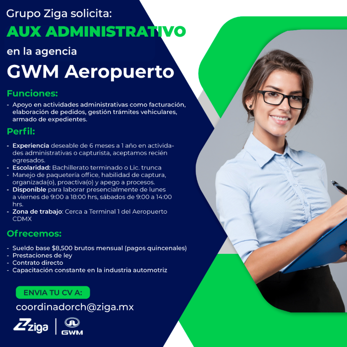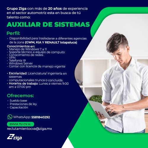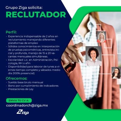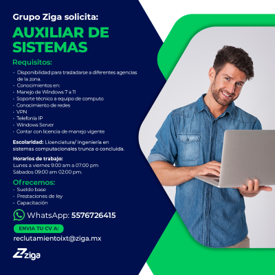 ¡Bienvenido a la bolsa de trabajo del Grupo Ziga! Encuentra tu próximo desafío profesional con nosotros en Morelos, CDMX, Edo de México (Ixtapaluca y Texcoco). Explora oportunidades emocionantes y haz avanzar tu carrera.